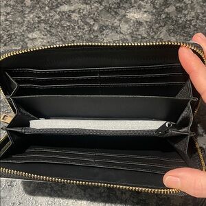 Charming wallet with a donkey print. Features a wrist strap for convenience. Perfect for animal lovers.