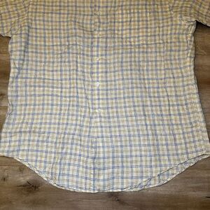 Brooks Brothers Shirt Mens L Pastel Yellow Plaid Check Tattersall Linen Pocket