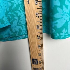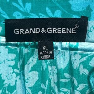 GRAND & GREENE Blouse XL Floral Tunic Blouse Teal Green Blue Long Sleeve V Neck