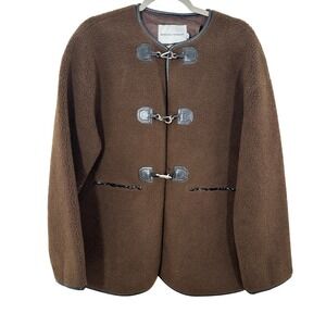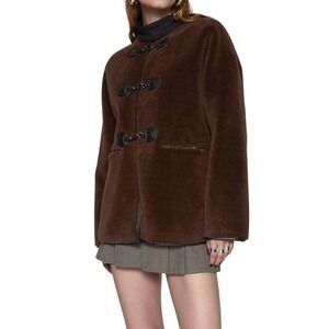 Rebecca Minkoff Shearling Toggle Jacket Brown Faux Suede Trim Quiet Luxury NWT