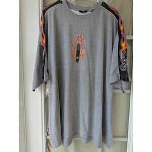 No Boundaries Y2K Vintage Biker Motorcycle Flame Baggy 3XL Oversized Gray Tee