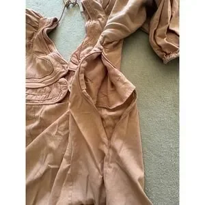 FARM Rio for Anthropologie Rose Pink Puff Sleeve V Neck Mini Dress XL