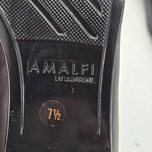 The Amalfi by Rangoni Oresie loafers in black, size 7.5, are a classic luxury designer shoe perfect for women looking for a stylish and comfortable flat option. Crafted from leather with a slip-on closure, these loafers feature a solid black color with a lightweight and comfortable design. The Amalfi brand exudes a preppy and hipster vibe, making these shoes ideal for those who appreciate high-quality craftsmanship and timeless style.