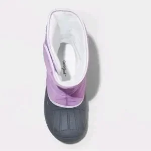 Kids' Asher Winter Boots - Cat & Jack Purple They will look and feel their comfy best on cool-weather outings with these Asher Winter Boots from Cat & Jack. Featuring a waterproof construction with soft faux fur lining for comfy wear, these winter boots have an adjustable hook-and-loop closure that lets your little one find the most comfortable fit, while allowing for easy on and off. In a colorblock hue for an on-trend look, your kiddo can pair these boots with their favorite shorts, jeans, or joggers for comfortable wear. Cat & Jack: Classics with an imagination of their own. fit & style Asher winter boots Waterproof construction Faux fur lining Hook-and-loop closure 8in shaft height Medium width