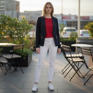 Carmen Marc Valvo Women’s Blazer Navy Blue Office Casual Preppy Fully Lined 8
