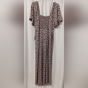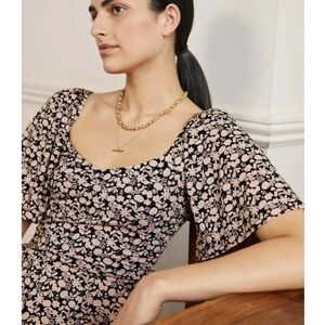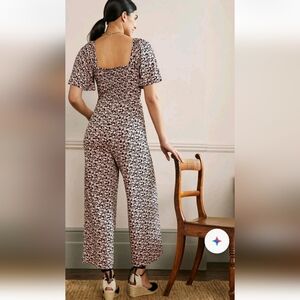 Boden Jersey Jumpsuit Size 10R Black Pink Flutter Sleeve Floral Ankle Length