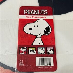 Peanuts Snoopy table mats with a bold red and black design. Features the iconic Snoopy character.