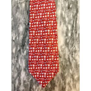 Salvatore Ferragamo Men's Silk Neck Tie Red Dragonflies & Butterflies.