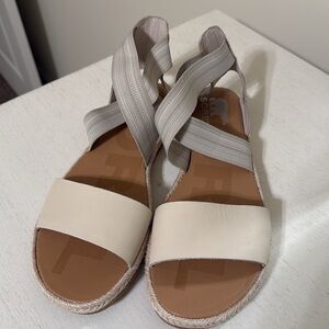 Sorel Women’s Ella II Espadrille Sandals / Size 10 / Color Chalk Cream / Brand NWOT - small mark left top band (see picture) not really noticeable / Leather Band across front and back heel