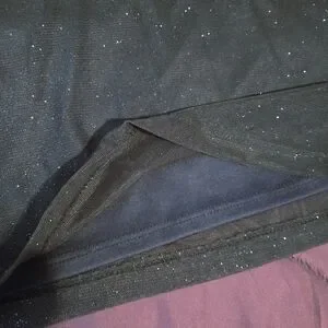 The dress is a bit more bluer in person. it's stretchy except for the mesh sleeves. The dress is also very glittery.