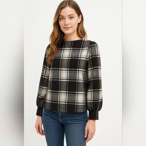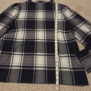 Talbots Womens Sweater Blouse Windowpane Plaid Long Sleeves Boxy Black White XL