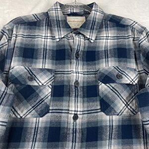 Weatherproof Vintage Men's Large Grey/Blue Plaid Flannel Lumberjack Twill Outdoor, Camping, Work Shirt