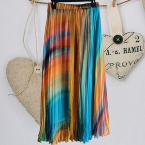 🩵Vintage Hippie Pleated Water color Maxi Skirt from Turkey.
