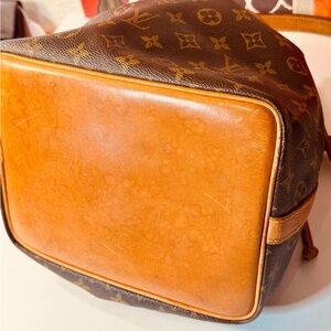 Louis Vuitton Petite Noe Monogram Shoulder bag Stylish brown drawstring bag with iconic monogram design. Perfect for everyday use.