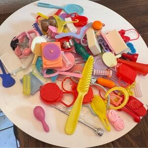 Vintage Bundle of Barbie accessories hangers record player records headphones