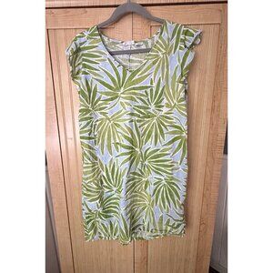 Sigrid Olsen 100% Linen Women Small Lime Green/Blue short sleeve Dress