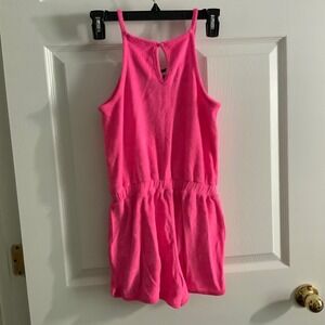 Super cute pink romper. Terry cloth fabric. Sporty stripes. No flaws, smoke free home