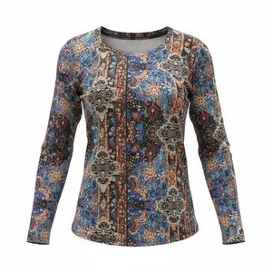 Elevate your wardrobe with this stylish multicolor patterned long sleeve top. Perfect for any occasion, this top combines comfort with a vibrant design.