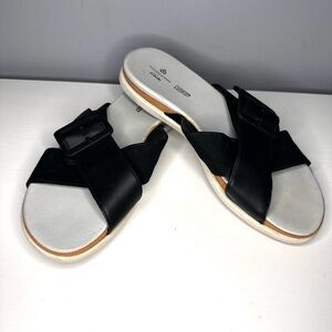 Cloudsteppers by Clarks Cushion Soft Black Leather Sandals Flat size 8 like new