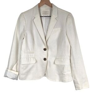J CREW Schoolboy Linen Blazer Women's Sz 4 Ivory Lined Business Academia Preppy