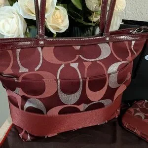 Coach Signature, Coach Optic, Coach Jacquard, Red Coach, Metallic Stripe, Glitter, Shimmer, Ava tote, shoulder bag, Coach Set, Coach Wallet, Coach Wristlet, Coach matching set, Coach Y2K, Y2K Coach, vintage Coach, Bordeaux