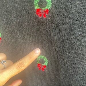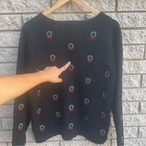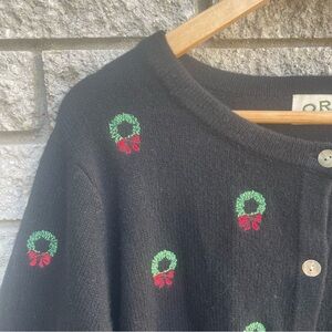Vintage Orvis Women's Black Wool Christmas Wreath Cardigan Sweater XL