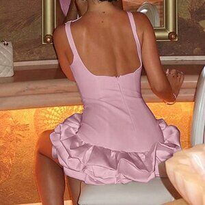 Baby Pink Sexy Women's Round Neck Sleeveless Ruffle Backless Mini Dress