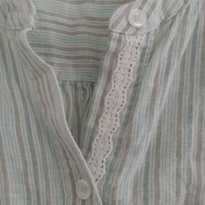 Lane Bryant Striped Crochet Linen Blend Shirt Top 14/16