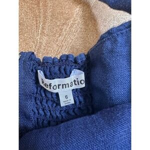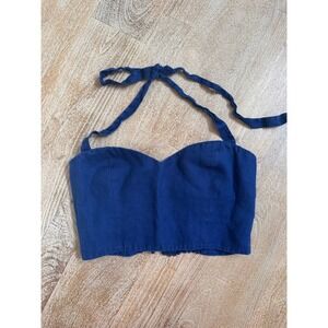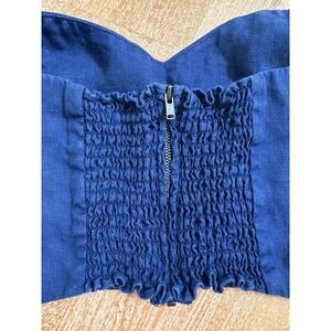 Reformation Navy Linen Smocked Halter Crop Top Size 6