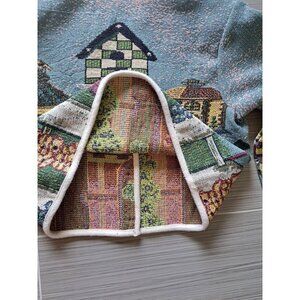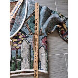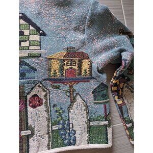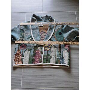 Vintage Sugar Street Weavers Birdhouse Tapestry Knit Cardigan Jacket Women's XL