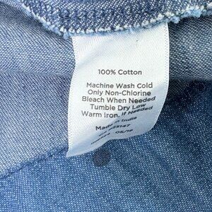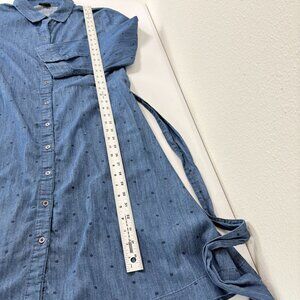 Talbots Polka Dot Denim Shirt Dress Womens 16 Blue Cotton Belted 3/4 Sleeve