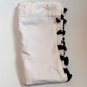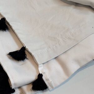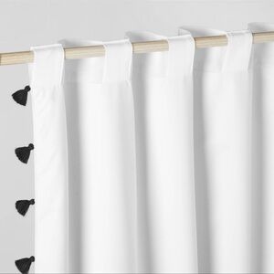White curtain panel with black tassels