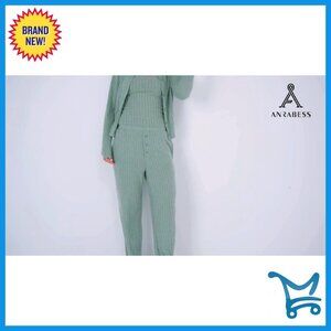 Brand new, never worn, and in flawless condition — this elegant three-piece lounge set offers a cozy, elevated look perfect for relaxing at home, enjoying a comfortable night's sleep, or stepping out for casual daily wear. The ribbed knit fabric is soft, stretchy, and incredibly comfortable.