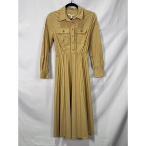 Derek Lam 10 Crosby Beige Kenza Pleated Shirt Dress Size 4 with Fabric Pull