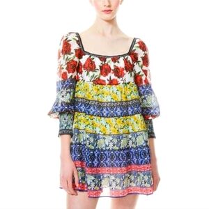 Alice + Olivia Rowen Floral Tiered Square Neck Mini Cocktail Dress Size Medium