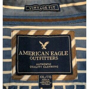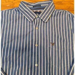 American Eagle Shirt Men's XXL Blue White Blue Stripes Vintage Fit Long Sleeved