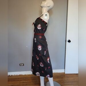 Pennywise the Dancing Clown, one of horror’s most beloved icons, shows all of his true faces in this terrifying new print from Vixen by Micheline Pitt’s newest collaboration with Warner Bros IT: Chapter Two™. Featured on our vintage style sweetheart wiggle, this dress features a delightful sweetheart neckline, a fully lined bodice and a fused front to give your ladies proper support. The Sweetheart is finished with a curve-hugging pencil skirt, ribbon detail at bust, back zip, adjustable straps and a removable red belt.
