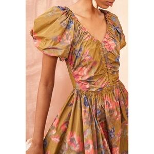 NWOT Ulla Johnson Midi Green Puff-Sleeve Floral Cecile Dress