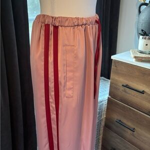 Stylish wide leg pants. Pink with bold red stripe. Comfortable fit. Perfect for casual wear.