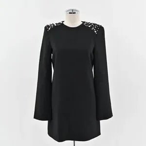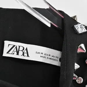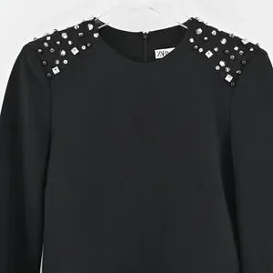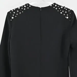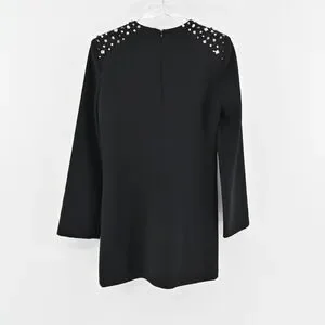 ZARA Studded Dress Size M Black Long Sleeve Shoulder Detail Mini Elevated Chic