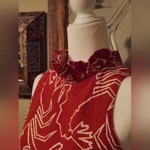 Tyler Boe Lobster Print Halter Linen Blend Top, Ruffle And Tie Detail