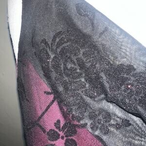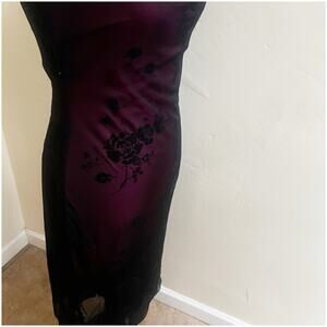 The Byer Too Whimsygoth Midi Dress in size Small is a striking slip dress featuring a black mesh overlay with a pink underlining. The dress has a cowl neck and sleeveless design with strappy sleeves, giving it a unique and whimsical look. Made from delicate mesh fabric, this dress is perfect for various seasons and occasions, from the 90s-inspired to gothic and dark fairy themes. Hand wash only to maintain its vintage charm and style, this dress is sure to make a statement in any wardrobe.