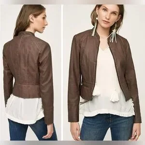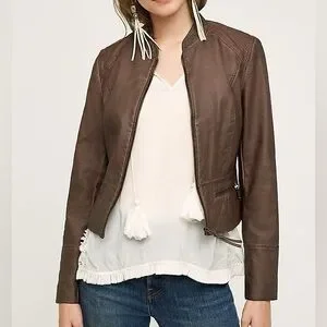 HEI HEI Anthropologie Dara Vegan Leather Moto Jacket Chocolate Brown