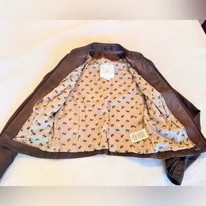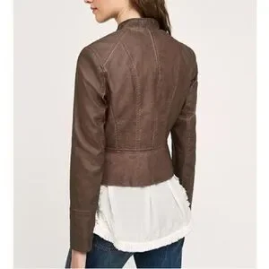 Sleek and stylish vegan leather jacket. Rich brown hue. Perfect for layering.