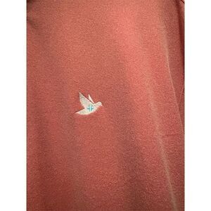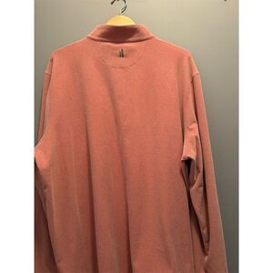 This Johnnie-O men's pullover sweater in size 2XL features a relaxed fit and is crafted from a blend of polyester and spandex. Designed for casual fall wear, it comes in a light mauve color with a solid pattern and includes a quarter zip and logo. The sweater is machine washable and originates from Korea. It has long sleeves and is not vintage. The item is pre-owned with noticeable pilling and wear.