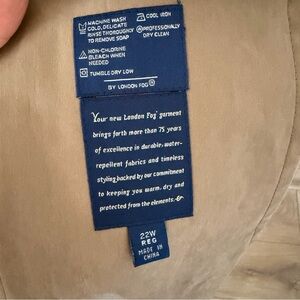 Classic, timeless London Fog trench coat in women’s size 22W Regular. This elegant double-breasted style features a belted waist for a flattering silhouette and a removable inner liner, making it versatile for multiple seasons.