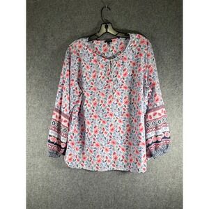 Talbots Plus Petite Floral Print Rayon Blouse Women 2X Petite Pink Blue Boho
