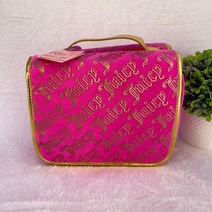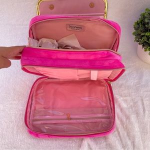 NEW Juicy Couture Hot Pink and Metallic Gold Velour Makeup Bag Case