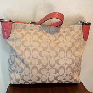 Coach Rare Gift Vintage Shoulder bag leather floral appliqué monogram canvas