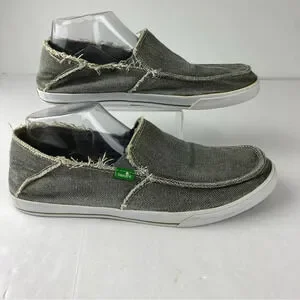 Sanuk Womens 10 Cabrio Gray Canvas Slip On Loafers